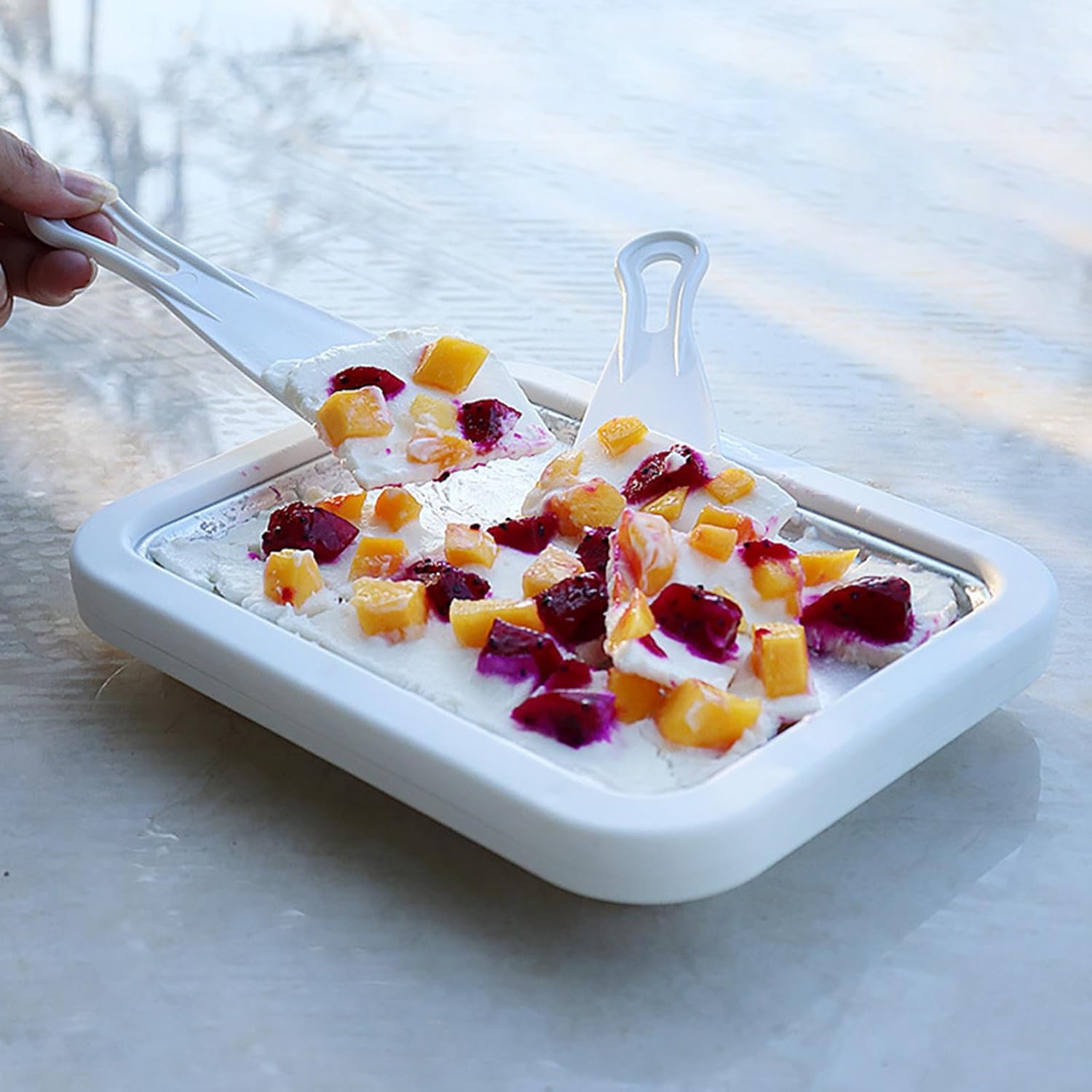Ο δίσκος είναι κατασκευασμένος από ανοξείδωτο ατσάλι 304 υψηλής ποιότητας, το οποίο είναι ασφαλές για χρήση. 🛡️ Το ανθεκτικό υλικό εξασφαλίζει μακροχρόνια διάρκεια και την προετοιμασία του παγωτού χωρίς ανησυχίες.