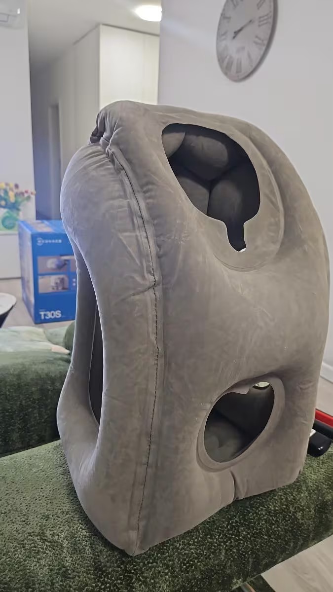 Ο κοίλος κεντρικός σχεδιασμός ακολουθεί τη φυσική γραμμή της κοιλιάς σας, διευκολύνοντας την αναπνοή κατά τη διάρκεια του ύπνου. Οι πλαϊνές εγκοπές σάς επιτρέπουν να ακουμπάτε άνετα τα χέρια σας, προσφέροντας πιο φυσική και χαλαρή στάση ύπνου. Ιδανικό για χρήση σε αεροπλάνο, τρένο, λεωφορείο, αυτοκίνητο ή ακόμη και στο γραφείο.